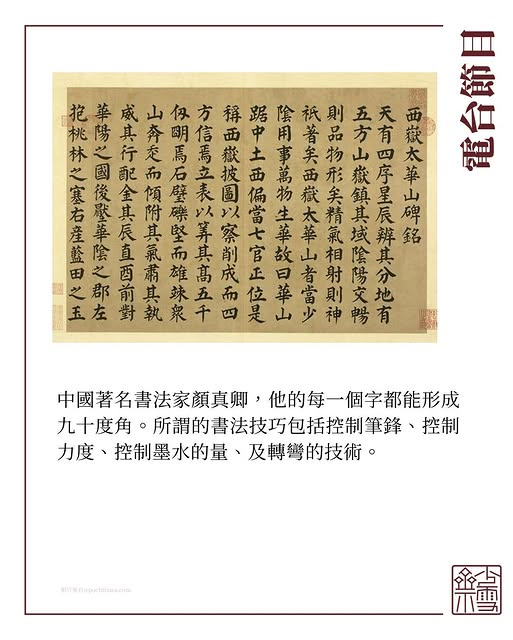 繼上一集講述文字的原由及不同風格的形成,今集會繼續深化大家在歷史方面對文字的了解。現今電腦世代很多人接觸的都是電腦的字體,與歷史的字體不能相比。電腦不會有古時構圖的結構。其實每個文字都有它自己的結構,稱之為結體。而一篇書法中有很多文字,很多字都是豎排,橫額就是橫排,古時有九成的字都是由右邊寫向左邊,少部份則是由左邊寫向右邊,與現代相反。行與行之間的距離都有它的空間規定,空間也是構圖的元素一種,而結構與平衡之間的構想稱之為章法。